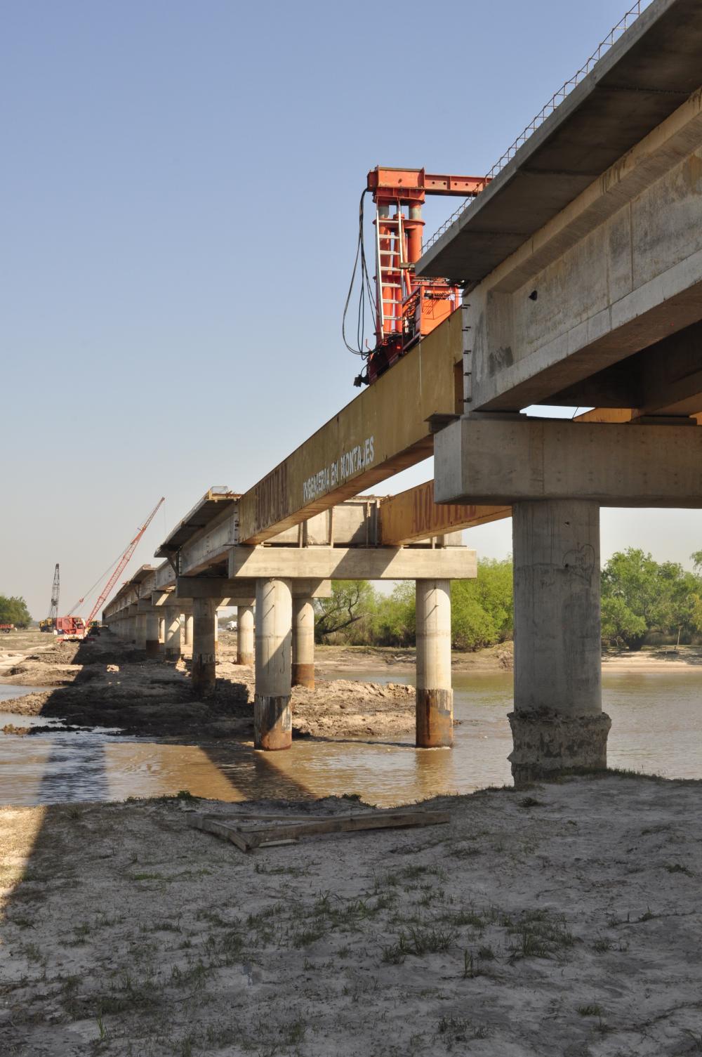 Los puentes a ejecutar seguirán la siguiente metodología de trabajo, se ejecutarán los pilotes excavados y hormigonados in situ, perforando previamente el terreno y rellenando la excavación con hormigón fresco y las correspondientes armaduras. Se utilizará hormigón tipo H21 aplicado según lo dispuesto en el CIRSOC. La armadura de los mismos se realizará con acero tipo ADN 420. Se colocarán las vigas pretensadas de hormigón tipo H-30 y armadura activa (armadura para la precompresión), de tensión característica de rotura a la tracción Bz ≥ 19.000 kg/cm2. Las vigas serán coladas en moldes metálicos y transportadas con sumo cuidado desde los lugares de prefabricación hasta su ubicación final, sobre las unidades de apoyo. Las mismas estarán constituidas por placas de neopreno intercaladas con chapas de acero. Los hormigones de la superestructura serán colados en un todo de acuerdo a las especificaciones técnicas, y a las reglas del buen arte. Los tipos de Hormigón incluidos en el proyecto del puente están identificados por el valor de su Resistencia Característica de rotura a compresión a la edad de 28 (veintiocho) días (de acuerdo con CIRSOC 201). Se colocarán barandas peatonales de acero a ambos lados de la calzada.