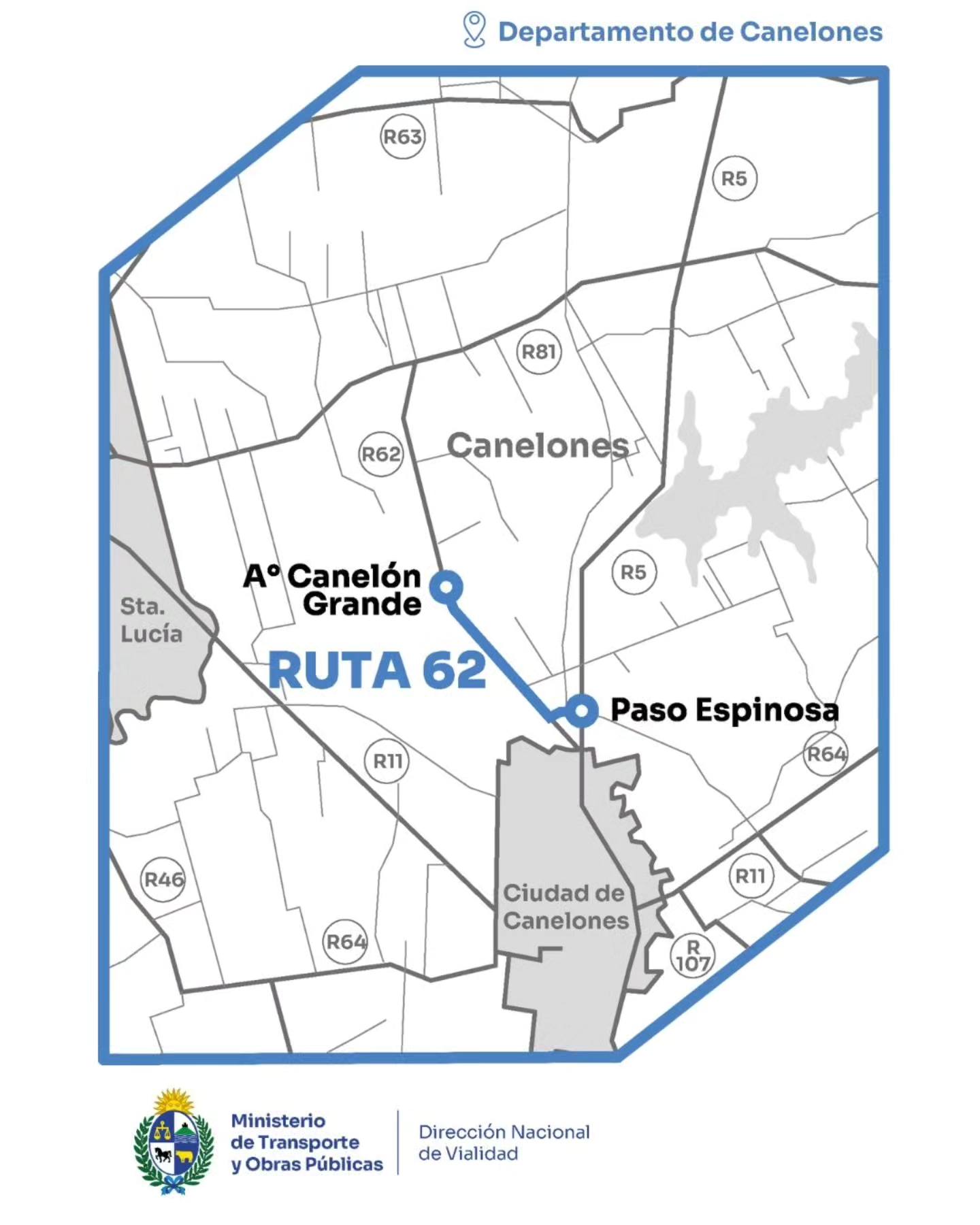 EL MTOP está iniciando una obra de infraestructura vial en el departamento de Canelones, en Ruta 62, desde Ruta 5 hasta Arroyo Canelón Grande.